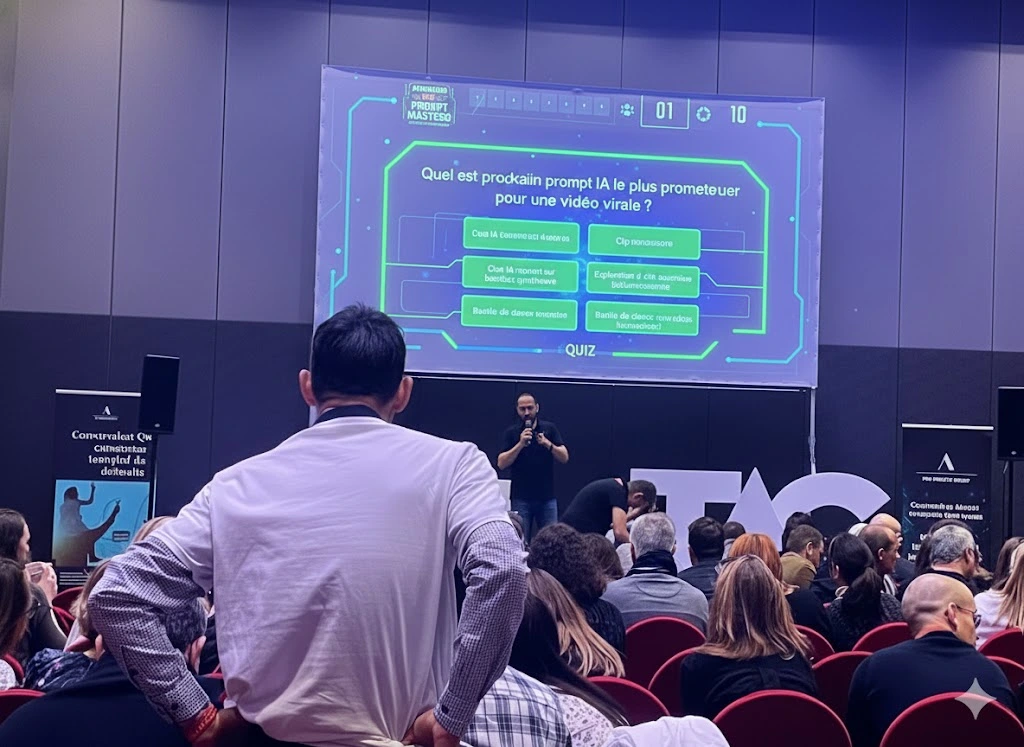 Pour votre soirée d’entreprise, ne choisissez plus entre un quiz traditionnel et une activité technologique : vivez Prompt Masters ! Une animation hybride, ultra rythmée, où la culture générale sur l’IA rencontre la puissance de la création assistée par ordinateur.
