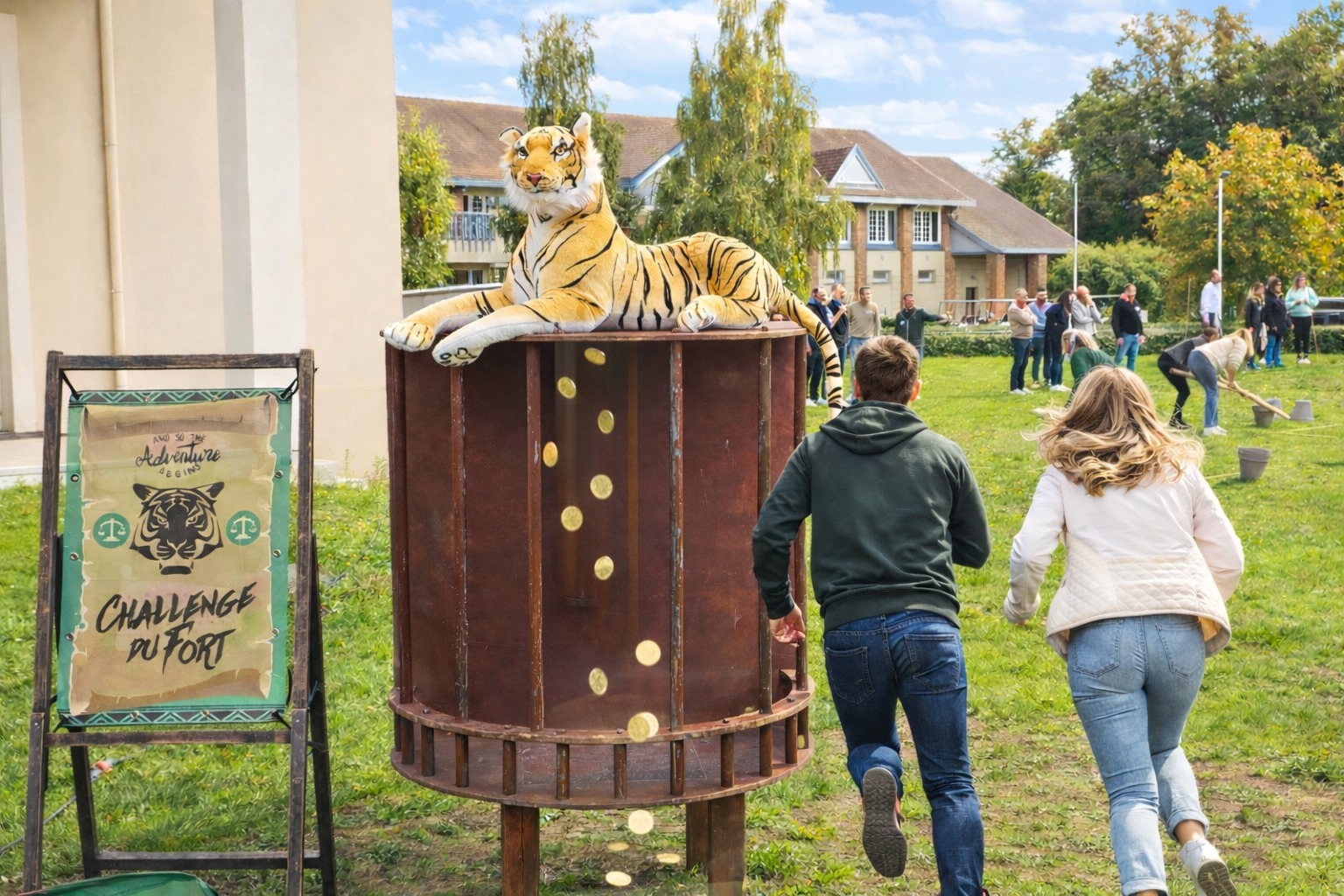 Dans vos propres locaux : Nos animateurs s’adaptent à votre espace. Une grande salle de réunion, un open-space libéré pour l’occasion ou une cour intérieure suffisent pour des formats de 10 à 300 participants.
